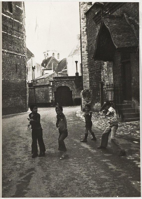 Spelende migrantenkinderen in het Begijnhof van Mechelen, 1975.