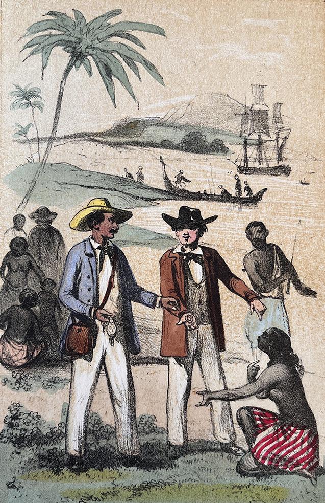 De Britse koopman Inkle verkoopt zijn geliefde Yarico als slaaf. Illustratie bij Fabelen en vertelsels van C.F. Gellert, bewerkt door de Nederlandse jeugdboekenschrijver Jan Schenkman (1856).